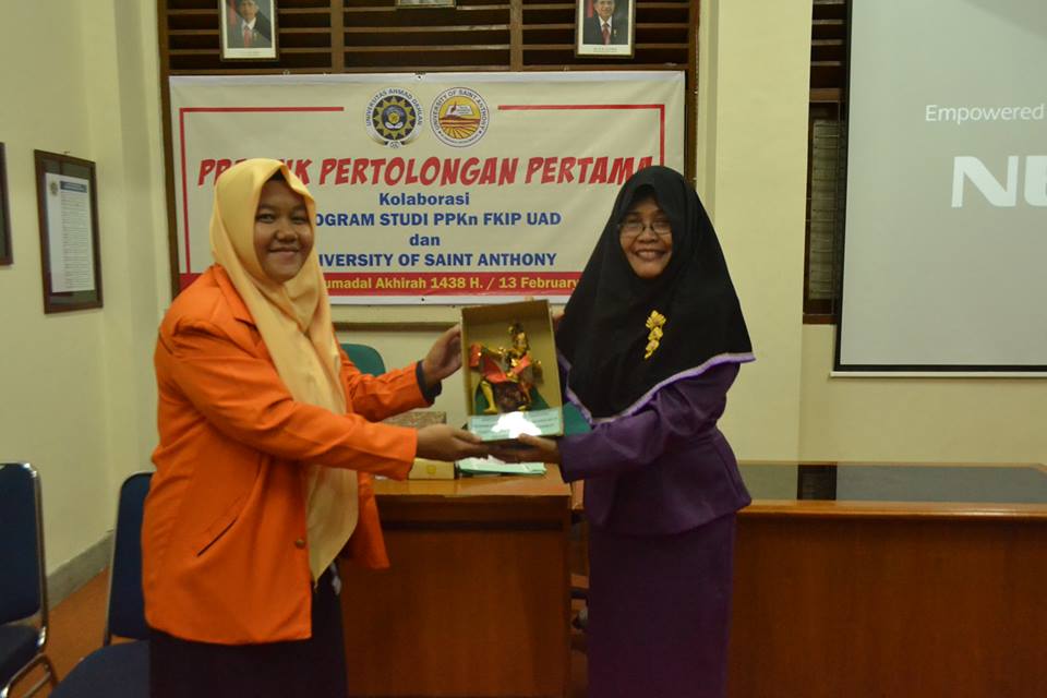 /in Akademik, Aktifitas, Aktifitas Kemahasiswaan, Aktifitas Prodi /by PPKn UADRombongan University of Saint Anthony (USANT) Philippines pada 13 Februari 2017 berkunjung ke Program Studi PPKn. Tiga agenda diselenggarakan bersama antara USANT dan PPKn UAD, Visiting Student and Lecturer; Studium Generale “Best Practice Model of Teaching International Humanitarian Law in Indonesia and Philippines; dan Praktik Pertolongan Pertama.