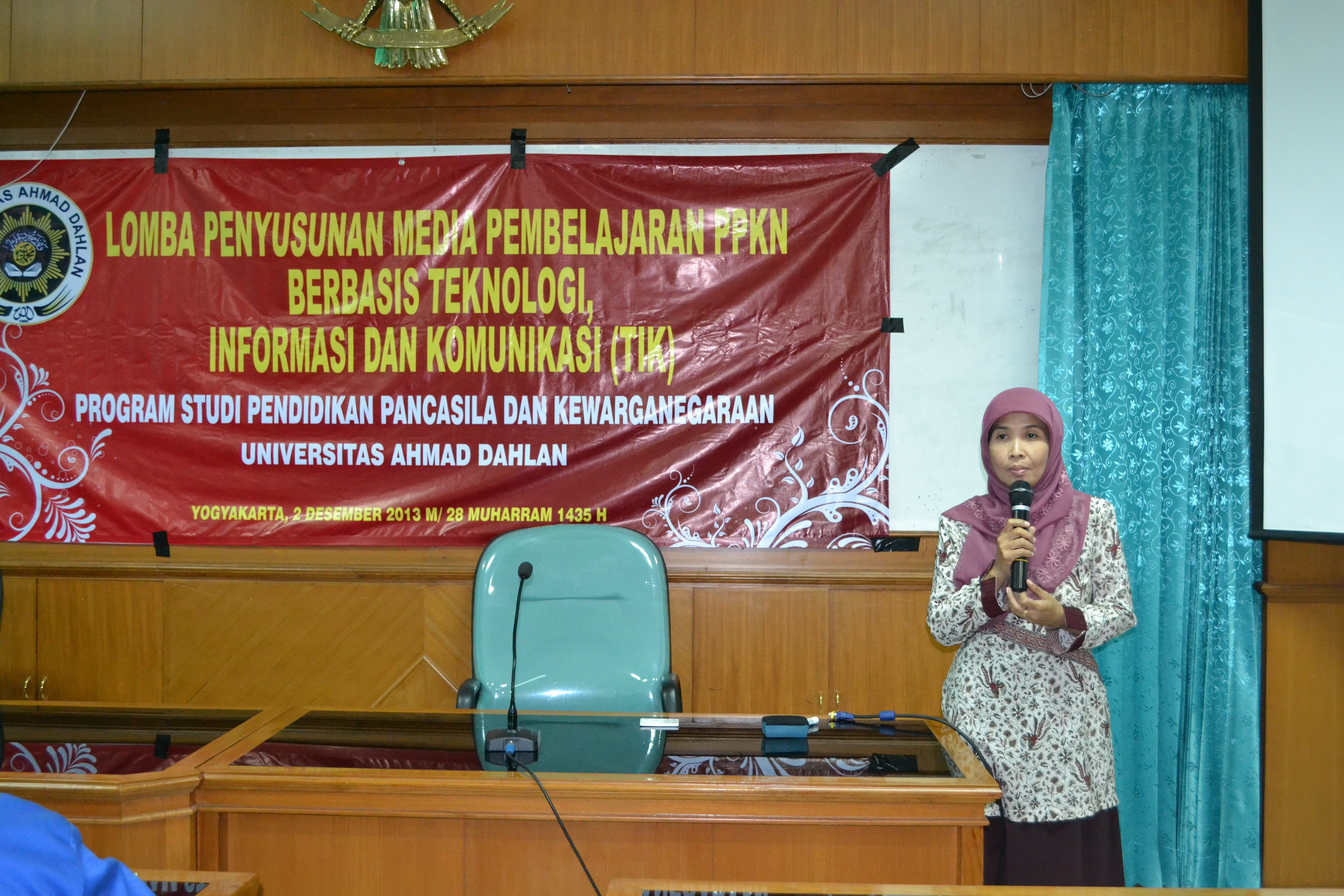 Lomba yang digelar di ruang sidang Kampus II UAD itu dibuka langsung oleh Ketua Program Studi PPKn. Dalam sambutannya, Dra. Sumaryati, M.Hum, menyampaikan bahwa melalui lomba ini, diharapkan guru PPKn melek TIK dan mampu melakukan proses belajar mengajar berbasis TIK “harapan ke depan dengan diadakannya perlombaan ini akan membuat guru PPKn yang dapat mengajar dengan berbasis teknologi informasi dan komunikasi”.